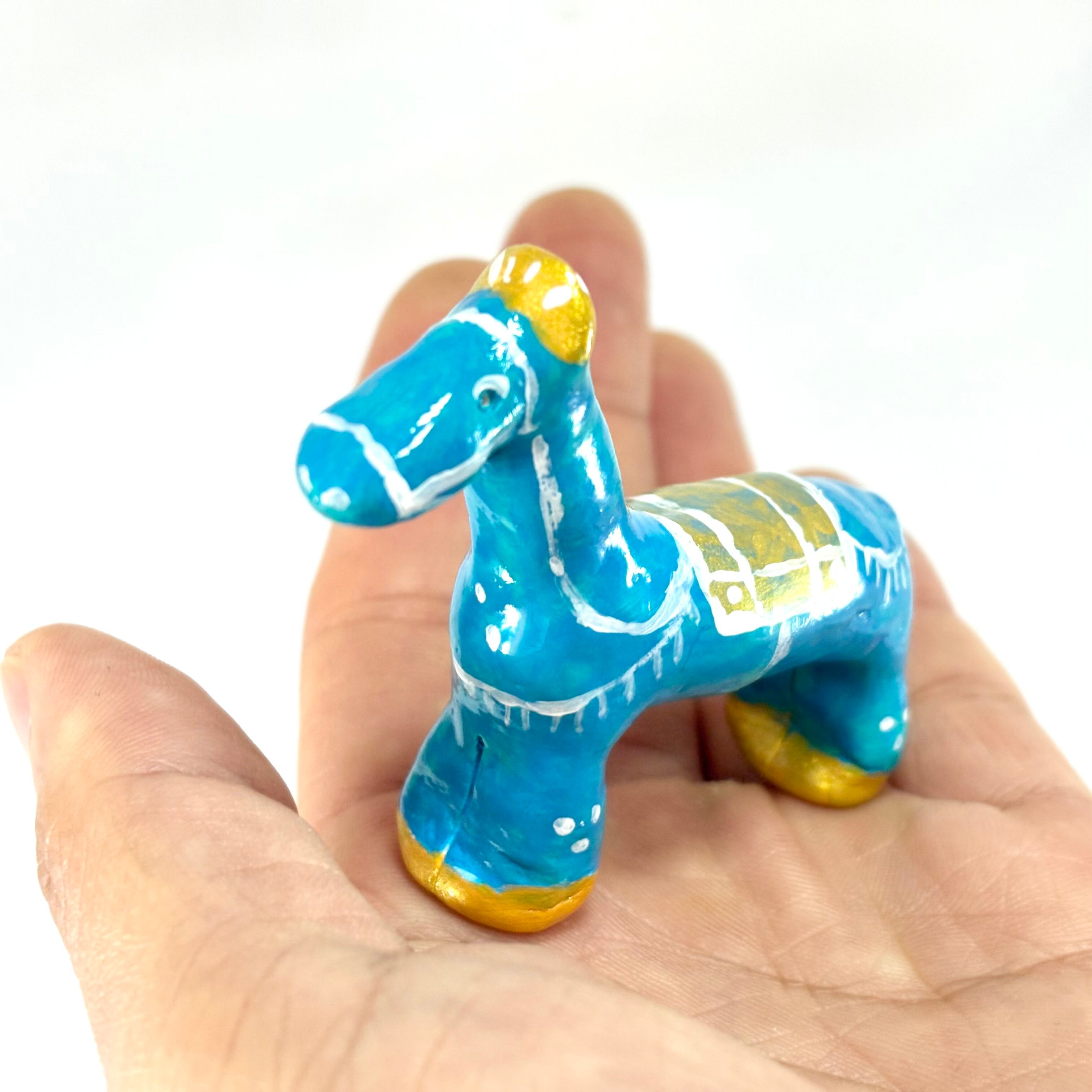 「幸運」や「繁栄」を象徴する青い馬が、あなたの暮らしにぱっかぱっかとしあわせの予感を運びます。すべて手作りの一点ものなかでも、一際様子がおかしい個性的な佇まいをおたのしみください。